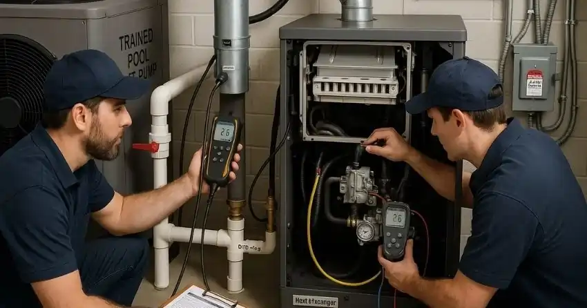 Pool heater repair problems in Newcastle? HVAC Newcastle finds the cause, replaces igniters, sensors, gas valves, control boards, and heat exchangers, clears scale, and confirms operation so the water warms up without unnecessary upsells.
